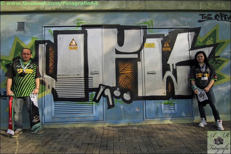| Galerie > Puggys bunter kunter Bund Ecke > Personenfotografie > 07.08.14 Borussia Fans Sarah + Meik |
