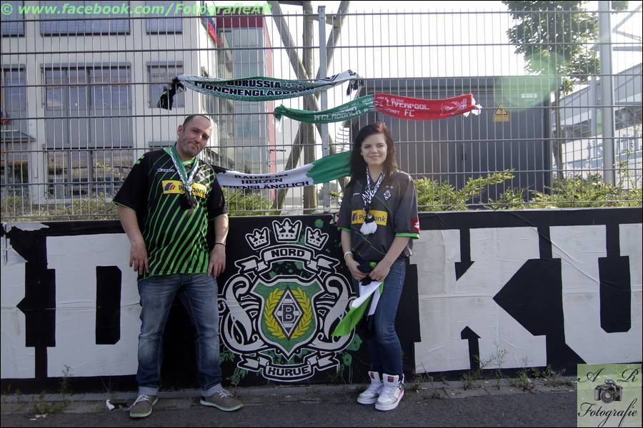 | Galerie > Puggys bunter kunter Bund Ecke > Personenfotografie > 07.08.14 Borussia Fans Sarah + Meik |